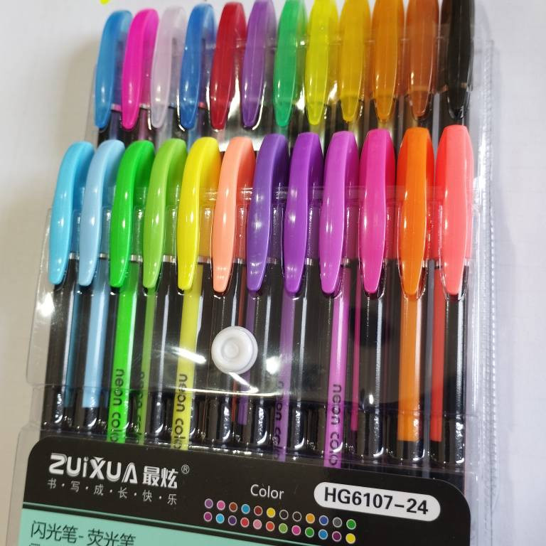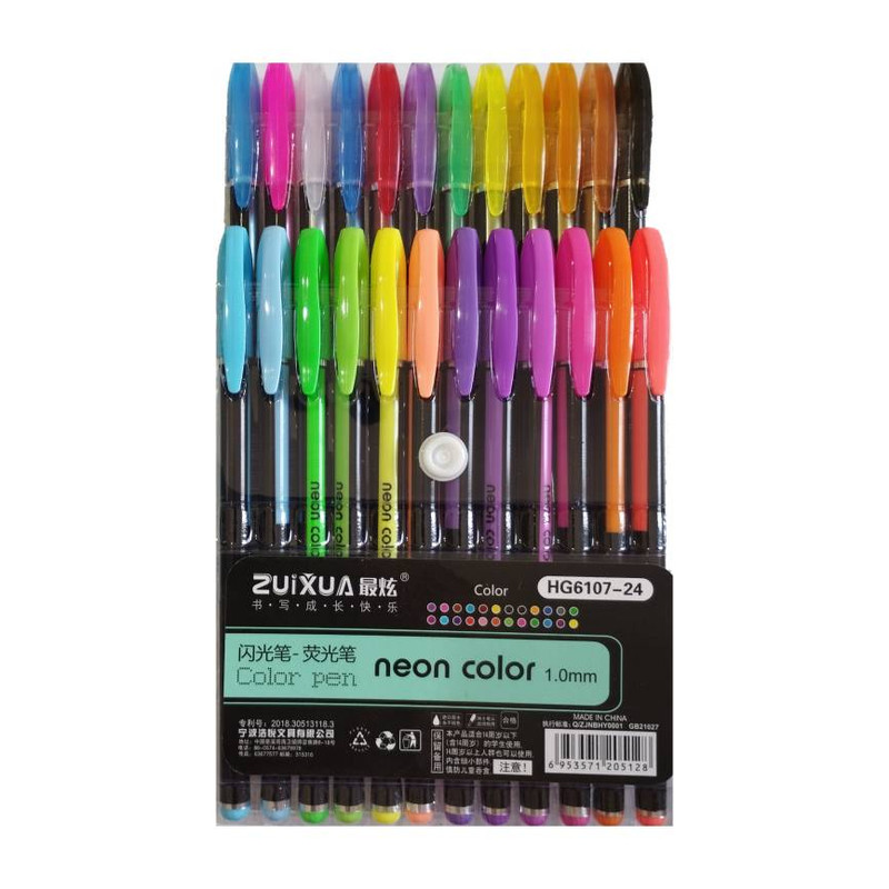 خودکار ژله ای 24 رنگ ژویکسوا شامل، 12رنگ نئونی و 12 رنگ اکلیلی بسیار زیبای ژله ای میباشد که در یک بسته بندی بزرگ ارایه میشود . رنگها قابلیت طراحی روی سیاهبرگ را دارند