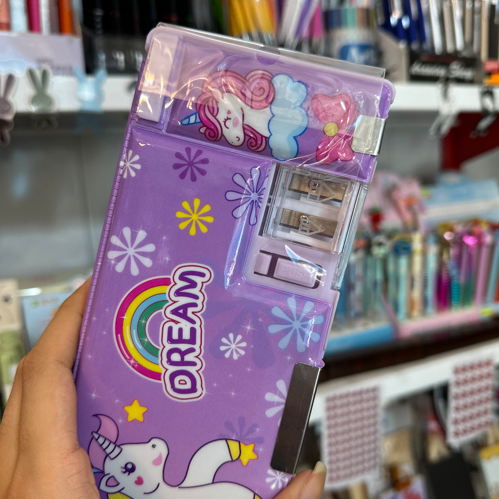 جامدادی مگنتی تک شاخ🦄 دولبه و جادار با دوتیغه تراش محفظه پاککن جدا با قیمت اقتصادی